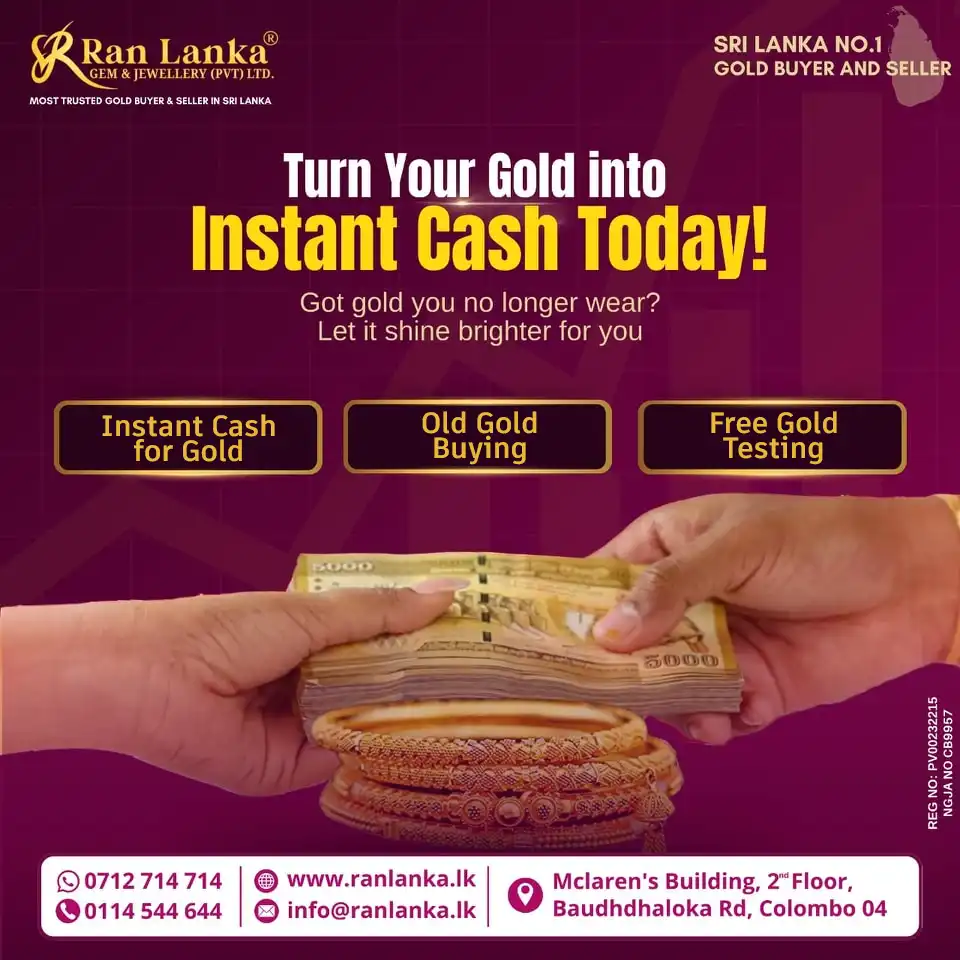 Sell or buy gold online easily with Ran Lanka β Sri Lankaβs most trusted online gold buyer. Just upload a photo of your gold or jewellery with your expected price, and we will contact you within 30 minutes with the best offer.